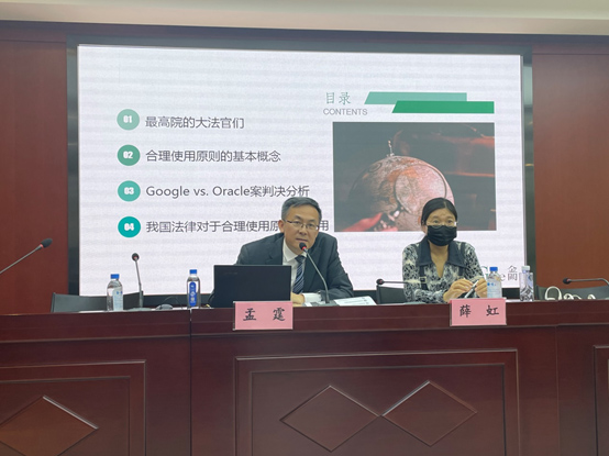 孟霆先生首先簡(jiǎn)要介紹了美國(guó)最高法院法官的組成和背景,結(jié)合“合理使用”原則產(chǎn)生的背景及相關(guān)典型案例,介紹了該概念內(nèi)涵不斷發(fā)展、沿革的過(guò)程。之后,孟霆先生詳細(xì)介紹了谷歌與甲骨文案始末,圍繞計(jì)算機(jī)軟件著作權(quán)保護(hù)的特殊性,對(duì)美國(guó)最高法院判決理由進(jìn)行了深入解讀,并對(duì)該案對(duì)“合理使用”原則概念的影響和發(fā)展趨勢(shì)進(jìn)行了展望。最后,孟霆先生對(duì)我國(guó)國(guó)內(nèi)法有關(guān)“合理使用”原則的相關(guān)規(guī)定、國(guó)內(nèi)相關(guān)司法案例對(duì)該原則的運(yùn)用進(jìn)行了對(duì)比分析,加深了聽(tīng)眾對(duì)“合理使用”原則的理解,為相關(guān)法律從業(yè)人員的實(shí)踐操作提供了有益啟示。