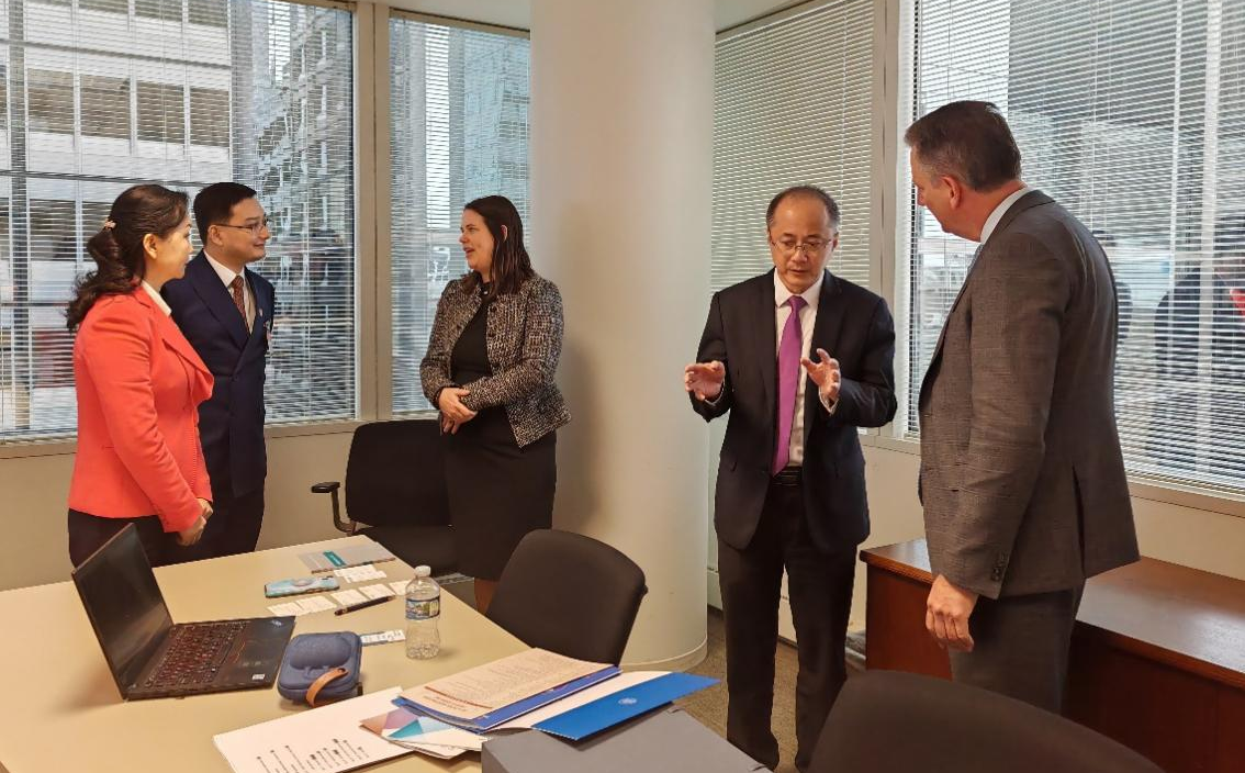 美國金融業(yè)監(jiān)管局爭議解決中心芝加哥區(qū)域辦公室副總監(jiān)摩根·約翰遜、深國仲院長助理兼任中國(深圳)知識產(chǎn)權仲裁中心主任陳巧梅、深國仲國際合作與發(fā)展處處長兼深國仲江門中心主任黃郭勇等參加業(yè)務交流。
