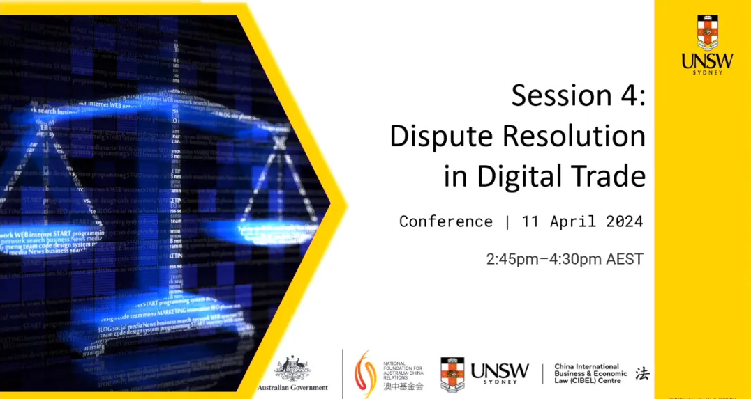 2024年4月11日,由新南威爾士大學(xué)中國國際商法與經(jīng)濟(jì)法中心(CIBEL)和澳中基金會(NFACR)聯(lián)合主辦的主題為“數(shù)字時代的澳中商業(yè):在激流中航行”的國際研討會以線上線下相結(jié)合方式舉辦。本次研討會匯集了來自中澳兩國法律和商業(yè)領(lǐng)域的專家,共同圍繞數(shù)字貿(mào)易的監(jiān)管、數(shù)字金融的影響以及相關(guān)爭議的解決等內(nèi)容展開交流和討論。中國國際經(jīng)濟(jì)貿(mào)易仲裁委員會(以下簡稱“貿(mào)仲”)事業(yè)發(fā)展處處長陸菲女士受邀在第四議題中代表貿(mào)仲發(fā)言。