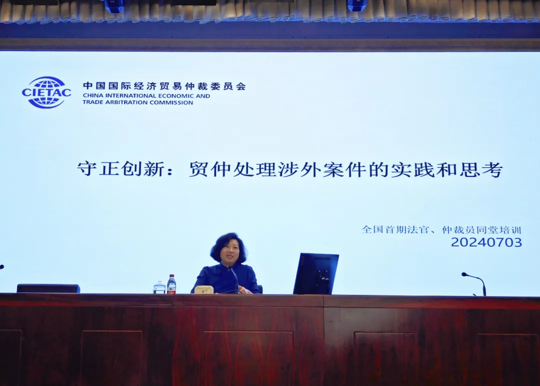 7月2日至6日,由司法部和最高人民法院共同主辦的首期仲裁員與仲裁司法審查法官同堂培訓班在國家法官學院舉行。7月3日,中國國際經(jīng)濟貿易仲裁委員會(以下簡稱“貿仲”)仲裁院副院長解常晴應邀以“守正創(chuàng)新:貿仲處理涉外案件的實踐和思考”為主題向參會的仲裁員和仲裁司法審查法官授課。