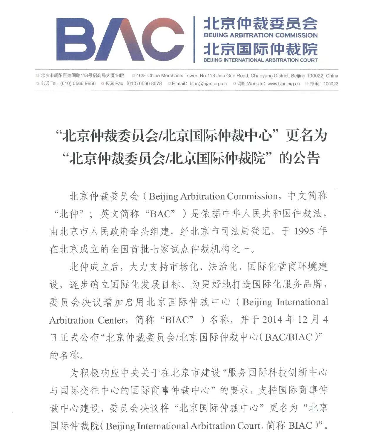 12月10日,記者從“建設(shè)國(guó)際一流仲裁機(jī)構(gòu) 助力國(guó)際商事仲裁中心建設(shè)”新聞發(fā)布會(huì)上獲悉,為積極響應(yīng)中央關(guān)于在北京市打造“服務(wù)國(guó)際科技創(chuàng)新中心與國(guó)際交往中心建設(shè)的國(guó)際商事仲裁中心”的要求,支持國(guó)際商事仲裁中心建設(shè),經(jīng)北京市司法局依法變更登記,12月4日“北京仲裁委員會(huì)/北京國(guó)際仲裁中心”的名稱(chēng)變更為“北京仲裁委員會(huì)/北京國(guó)際仲裁院”(以下簡(jiǎn)稱(chēng)北仲)。