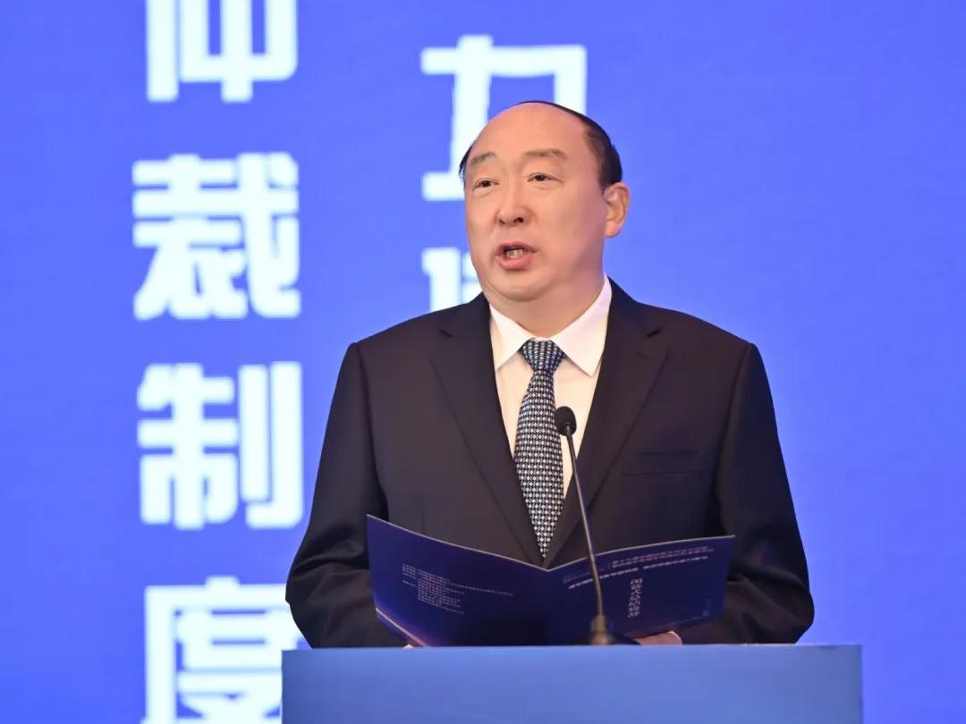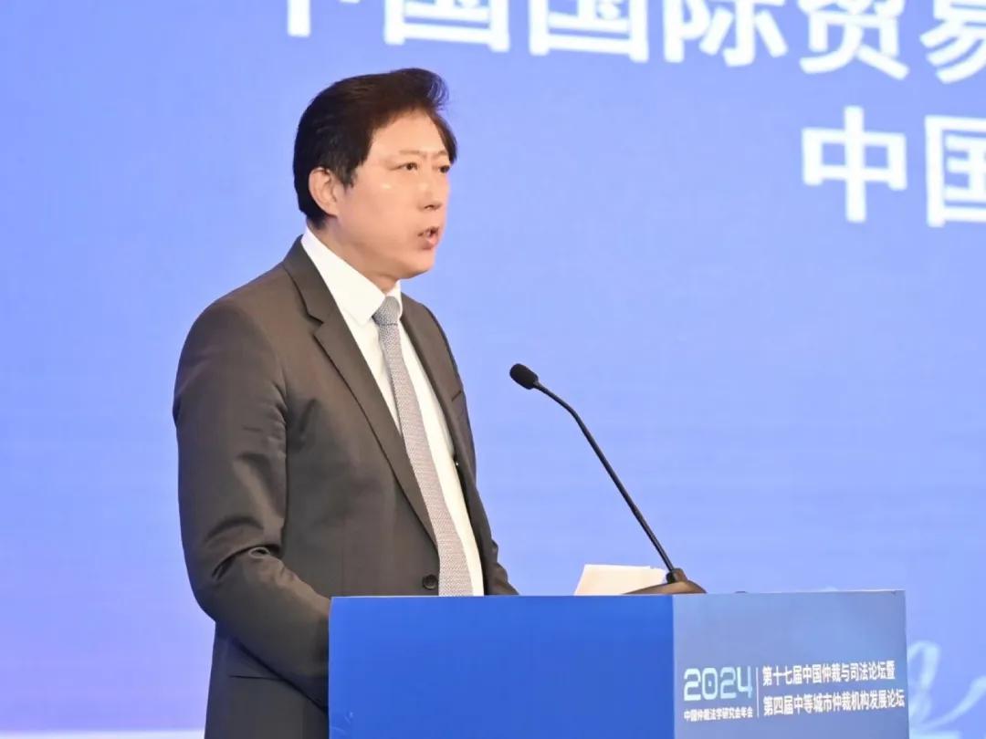 (中國(guó)國(guó)際貿(mào)易促進(jìn)委員會(huì)黨組成員、副會(huì)長(zhǎng)、中國(guó)仲裁法學(xué)研究會(huì)會(huì)長(zhǎng)于健龍作開(kāi)幕致辭)