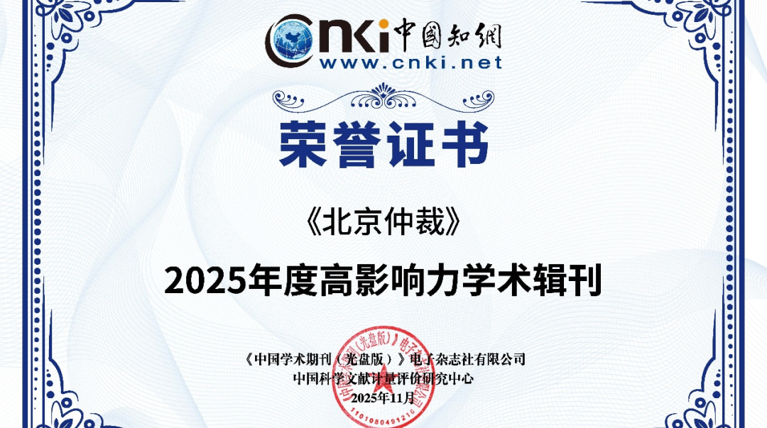 《北京仲裁》蟬聯(lián)高影響力學(xué)術(shù)輯刊獎(jiǎng)