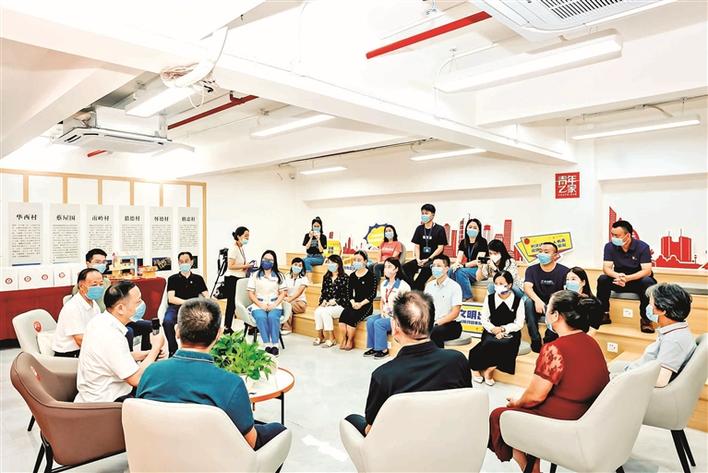 新田社區(qū)“社區(qū)書記茶話會”現(xiàn)場,街坊鄰里一起話創(chuàng)文。