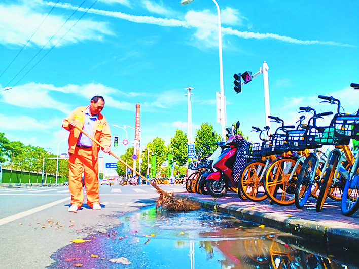 “因為中午氣溫高,我們強化了清晨作業(yè)力度,趁著氣溫不高,對責(zé)任路段進(jìn)行徹底清掃。過了中午后,一般僅開展巡視和撿拾垃圾工作,盡量避免長時間暴露在烈日下作業(yè)。”化玉紅說,“另外,為了減輕環(huán)衛(wèi)工人工作負(fù)擔(dān),我們增加了洗掃車、清洗車、沖洗車等機械化車輛的作業(yè)頻次,每天避開交通高峰期,分早、晚班次開展機械化作業(yè)。”