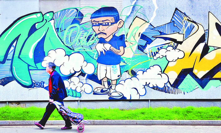 長江180藝術(shù)街區(qū)內(nèi)的涂鴉墻 關(guān)堂所 攝