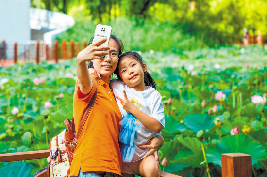 市民在城市公園里游玩打卡。 (本報資料片)