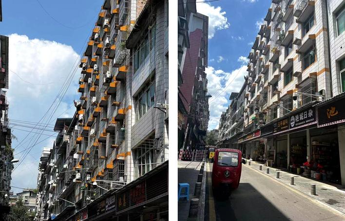 航大商城“蜘蛛網(wǎng)”整治前后對(duì)比。(本報(bào)恩施圖片庫 王玲 攝)