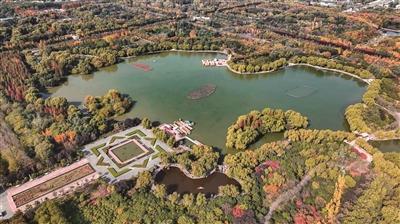 初冬時(shí)節(jié),城市水系,層林盡染,景色宜人。