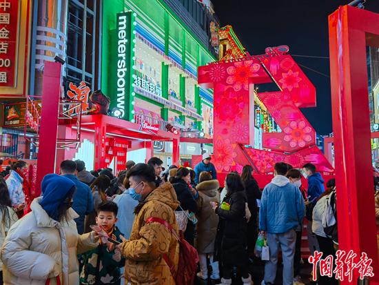 1月16日晚上,長(zhǎng)沙步行街仍然川流不息。許多商家都在搭臺(tái)推出促銷活動(dòng)。記者 洪克非/攝