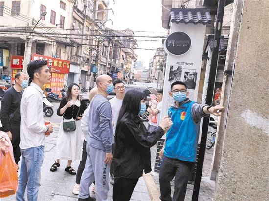網(wǎng)格員化身宣傳員、講解員,向游客介紹街區(qū)的各個(gè)點(diǎn)位。