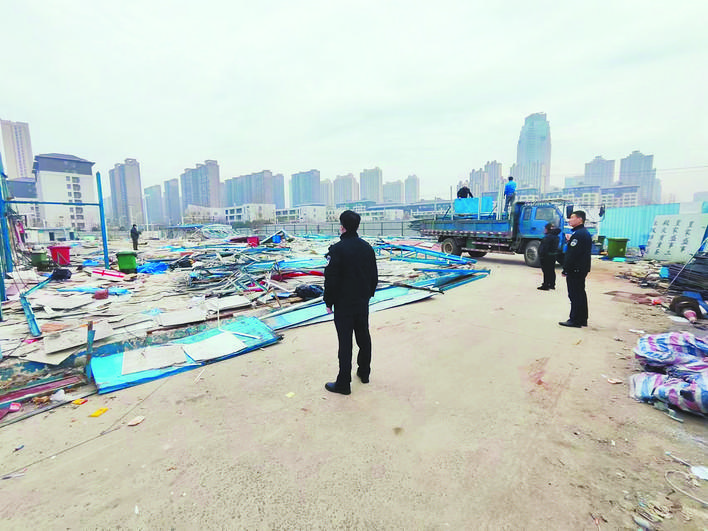 3月20日,記者從合肥市包河區(qū)城管局獲悉,近日,該區(qū)方興城管大隊(duì)協(xié)助葛洲壩項(xiàng)目工地人員對(duì)該處6200平方米超期臨時(shí)工棚進(jìn)行拆除。
