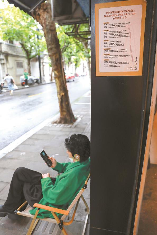 走在這條路上,你會(huì)注意到,不少店鋪都將圍墻向里退界,借墻體“擠”出幾個(gè)戶外卡座;你也會(huì)注意到,很多商戶墻上,貼著“門(mén)責(zé)制”自律規(guī)約二十條,對(duì)衛(wèi)生、安全和規(guī)范經(jīng)營(yíng)等作出承諾。政府部門(mén)希望,通過(guò)“最小治理單元”的自治,引導(dǎo)商戶管理好自家“一畝三分田”,并增加商戶今后對(duì)于街區(qū)各項(xiàng)事務(wù)的參與感和話事權(quán)。