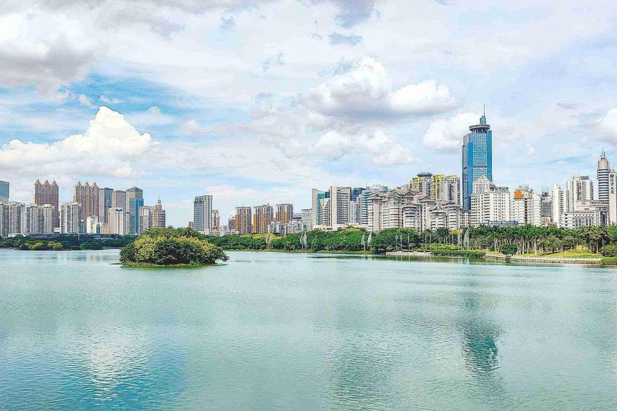 綠城濕地與藍(lán)天繪就一幅生態(tài)宜居畫卷,引來(lái)市民拍照留念。記者 黃維業(yè) 攝