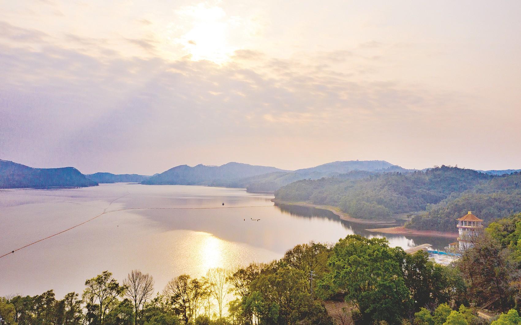 落日余暉中的大王灘風(fēng)景區(qū)綽約多姿。記者 潘浩 攝
