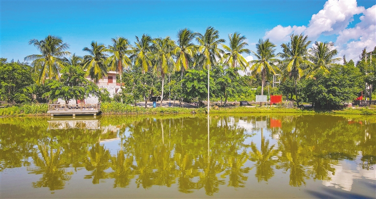 近日,在儋州市木棠鎮(zhèn)薛宅村“潤心湖”,風景秀麗。