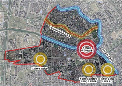 根據(jù)《總體方案》,京津冀同城商務區(qū)正在打造“一核兩帶三組團”的空間布局。其中,“一核”即天津西站核心商務區(qū),“兩帶”是光榮道科技創(chuàng)新產(chǎn)業(yè)帶和濱水生態(tài)文化帶,“三組團”為西北角金融和數(shù)字經(jīng)濟產(chǎn)業(yè)聚集區(qū)、大胡同商貿(mào)和文旅聚集區(qū)、優(yōu)質(zhì)體教融合區(qū)。未來該商務區(qū)將建成高鐵樞紐綜合開發(fā)標桿區(qū)、同城生產(chǎn)生活引領(lǐng)區(qū)、都市型產(chǎn)業(yè)升級先行區(qū)、津衛(wèi)人文生態(tài)魅力區(qū)。