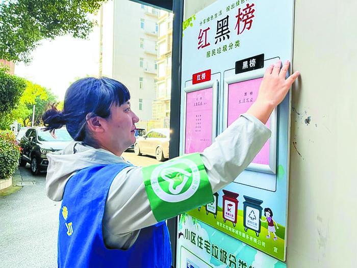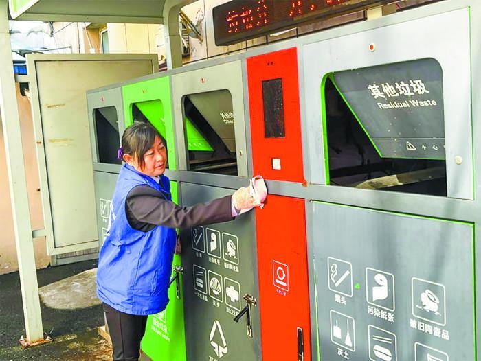 趙以芹是建鄴區(qū)一小區(qū)物業(yè)服務(wù)企業(yè)的保潔主管,也是一名垃圾分類志愿者、指導(dǎo)員,小區(qū)里的孩子親切地稱她為“垃圾分類婆婆”。她每天穿梭在小區(qū)收集房亭周邊,早晨上崗的第一件事就是掀起一個個垃圾桶蓋仔細(xì)查看,“部分垃圾是指導(dǎo)員下班后投放的,不知道分得好不好,我得抓緊時間檢查一下,否則垃圾累積多了,就更不好分了……”趙以芹說。每當(dāng)居民來投放垃圾時,她總是習(xí)慣性地將垃圾袋打開仔細(xì)檢查一遍,若發(fā)現(xiàn)混投,會向居民進(jìn)行分類示范。久而久之,小區(qū)居民基本能做好生活垃圾分類工作。