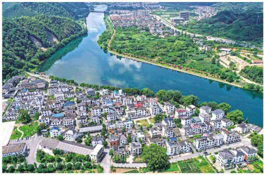▲在浙江省衢州市開化縣拍攝的錢塘江源頭河——馬金溪沿岸金星村。當?shù)刈畲笙薅鹊乇A袅饔驗┑貫┝?,將“固?綠岸+慢道”結合建設,帶動鄉(xiāng)村旅游和民宿經(jīng)濟大力發(fā)展(2023年8月2日攝)。新華社記者 黃宗治 攝