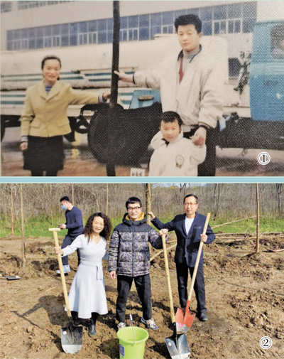 圖①:1999年春,魏文芳(左一)和家人種下第一棵樹(shù)時(shí)的合影。受訪者供圖