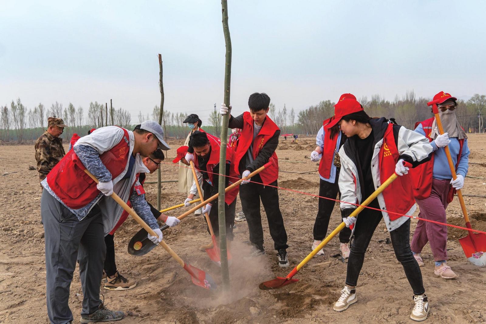 志愿者合作植樹(4月1日攝)。 記者 梁小雨 攝