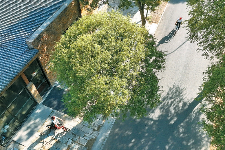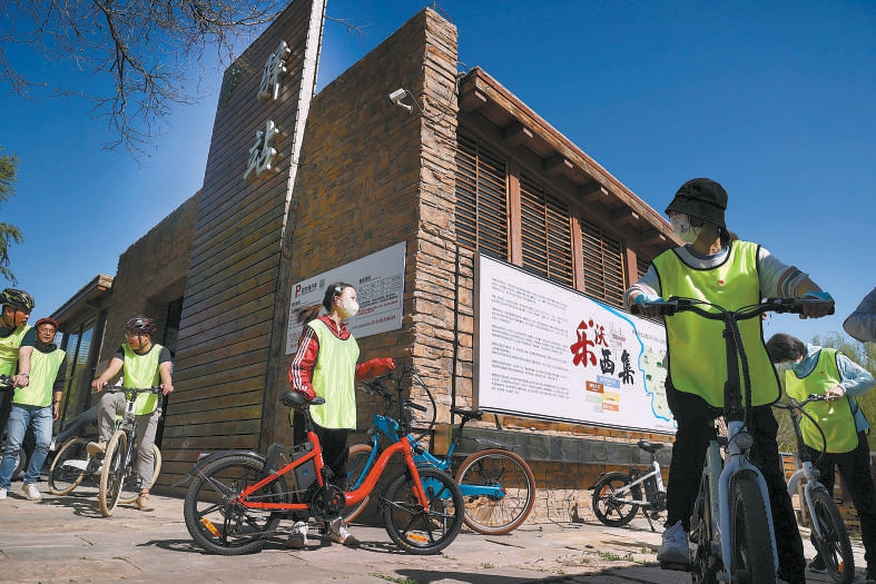 騎行活動集合始發(fā)的騎行驛站,距離運河不到500米,是由過去廢棄的公共衛(wèi)生間改造而成,呈現(xiàn)出質(zhì)樸大氣的工業(yè)風(fēng)格,令人眼前一亮。驛站內(nèi),游客不僅可以享受熱水、咖啡、簡餐、手機充電、騎行設(shè)備維修等服務(wù),還可通過圖文展板、實物展陳、多媒體影像等方式,了解西集鎮(zhèn)深厚的文化底蘊和特色產(chǎn)業(yè)?!拔覀儑@‘健康+旅游’打造了兩條生態(tài)騎行線路,自3月中旬以來,每周都組織騎行活動,帶領(lǐng)游客打卡精品民宿和特色村莊,到種植園采摘農(nóng)產(chǎn)品,活動收獲了大家的一致好評?!斌A站運營方相關(guān)負責(zé)人李龍海說。