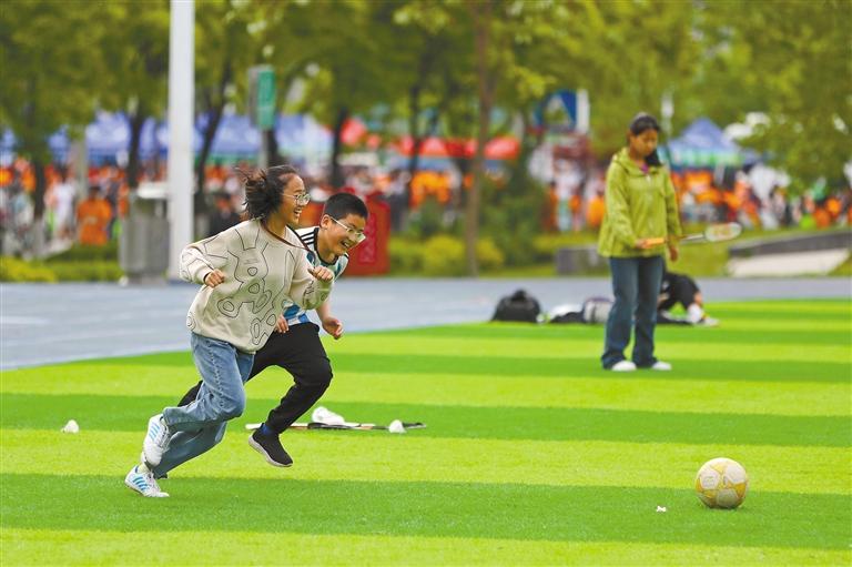 近年來,彬州市先后獲評“全國群眾體育工作先進集體”“陜西省全民健身示范縣”,全民健身氛圍濃郁。圖為5月5日,青少年在彬州市奧體中心的戶外足球場鍛煉。記者 肖陽熠 攝