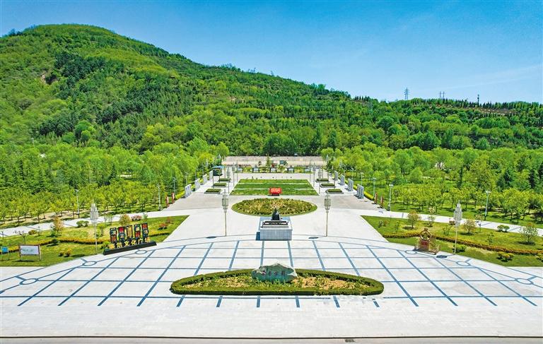 5月5日,航拍旬邑縣書香公園。該公園背靠青山,綠水環(huán)繞,并設置有多種科普體驗設施,方便市民在休閑娛樂的同時,了解科學知識。 記者 王熙 攝