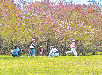 小朋友們在丁香樹叢間玩耍。苗麗田 攝(人民視覺)