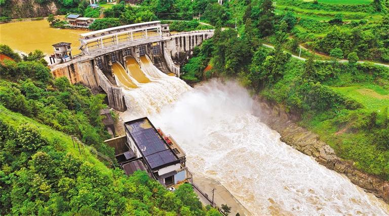 6月18日,位于貴州省錦屏縣境內(nèi)的八河水電站開閘泄洪。楊曉海 攝(中經(jīng)視覺)