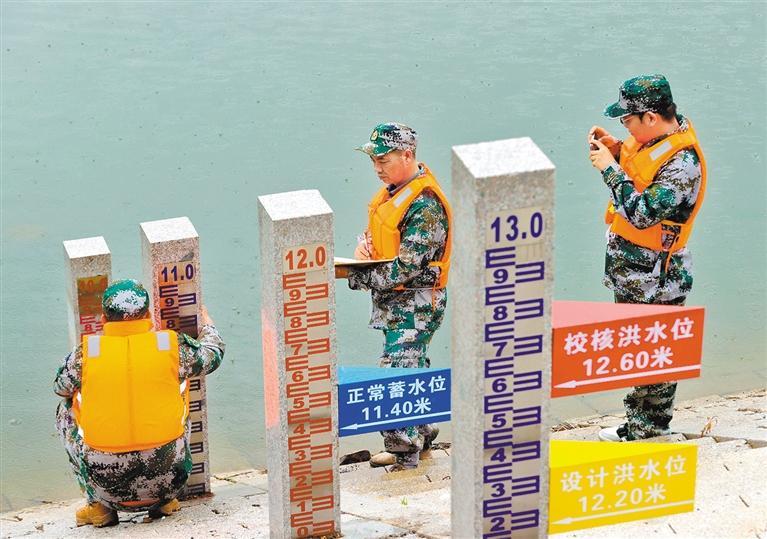 6月19日,在浙江省德清縣楊墳塢水庫(kù)水位標(biāo)尺處,工作人員在開展防汛安全隱患排查。謝尚國(guó) 攝(中經(jīng)視覺)