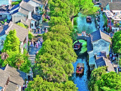 游客在浙江湖州小西街游覽。