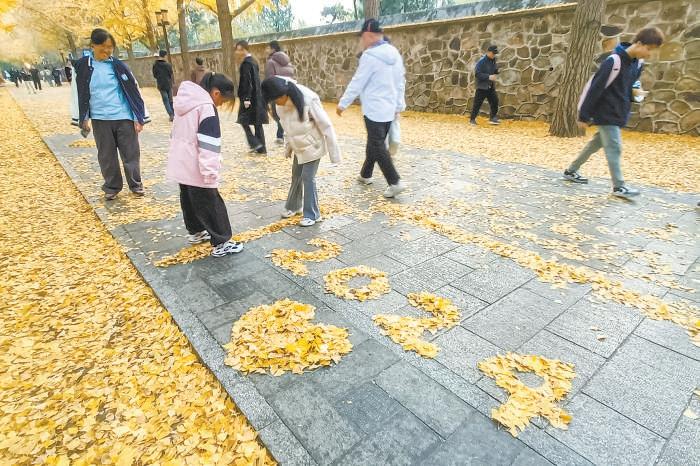 在深秋、初冬交替之際,公園里的落葉繪就了獨特的景致。為了留住這份季節(jié)交替的自然之美,北京市很多公園緩掃落葉,讓落葉自然成景,延長觀賞期。