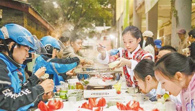 “在這個寒冷的季節(jié),能喝上一碗熱茶,吃上熱烘烘的紅薯,既暖了胃又暖了心!”11月16日下午,“留學重慶·讀懂農(nóng)歷”中外青少年自然探索農(nóng)歷體驗活動在沙坪壩區(qū)土灣街道重棉院開展。來自美團、餓了么的30名外賣騎手,與中外青少年一起體驗圍爐煮茶、插花、烤面包紅薯等冬日習俗,并為當?shù)仞B(yǎng)老院老人送去了羊肉湯、餃子等美食。活動結束后,美團騎手周杰感慨道:“現(xiàn)在社會各界都來關心關愛我們,特別暖心。”