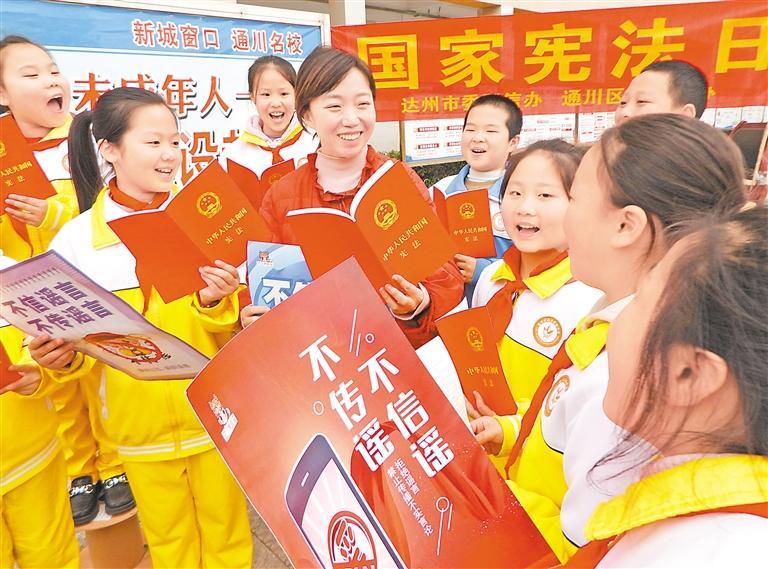 12月3日,在四川省達(dá)州市通川區(qū)羅江鎮(zhèn)魏興實(shí)驗(yàn)學(xué)校,普法志愿者給學(xué)生講解憲法知識(shí)。今年12月4日是第十一個(gè)國家憲法日,各地開展形式多樣的活動(dòng)普及憲法知識(shí),宣傳法治觀念。2024年“憲法宣傳周”活動(dòng)主題為“大力弘揚(yáng)憲法精神,推動(dòng)進(jìn)一步全面深化改革”,時(shí)間為12月1日至7日。新華社發(fā)