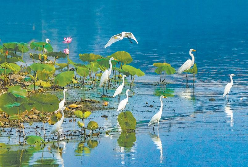 河北雄安新區(qū):劃定9個(gè)鳥(niǎo)類重要棲息地,劃定重點(diǎn)區(qū)域?yàn)榻麧O區(qū);淀區(qū)野生鳥(niǎo)類286種、大型水生植物47種、浮游植物406種、底棲生物38種;國(guó)家一級(jí)保護(hù)動(dòng)物、全球極瀕危物種青頭潛鴨在此棲息……白洋淀生態(tài)系統(tǒng)多樣性、穩(wěn)定性、持續(xù)性已得到顯著提升。
