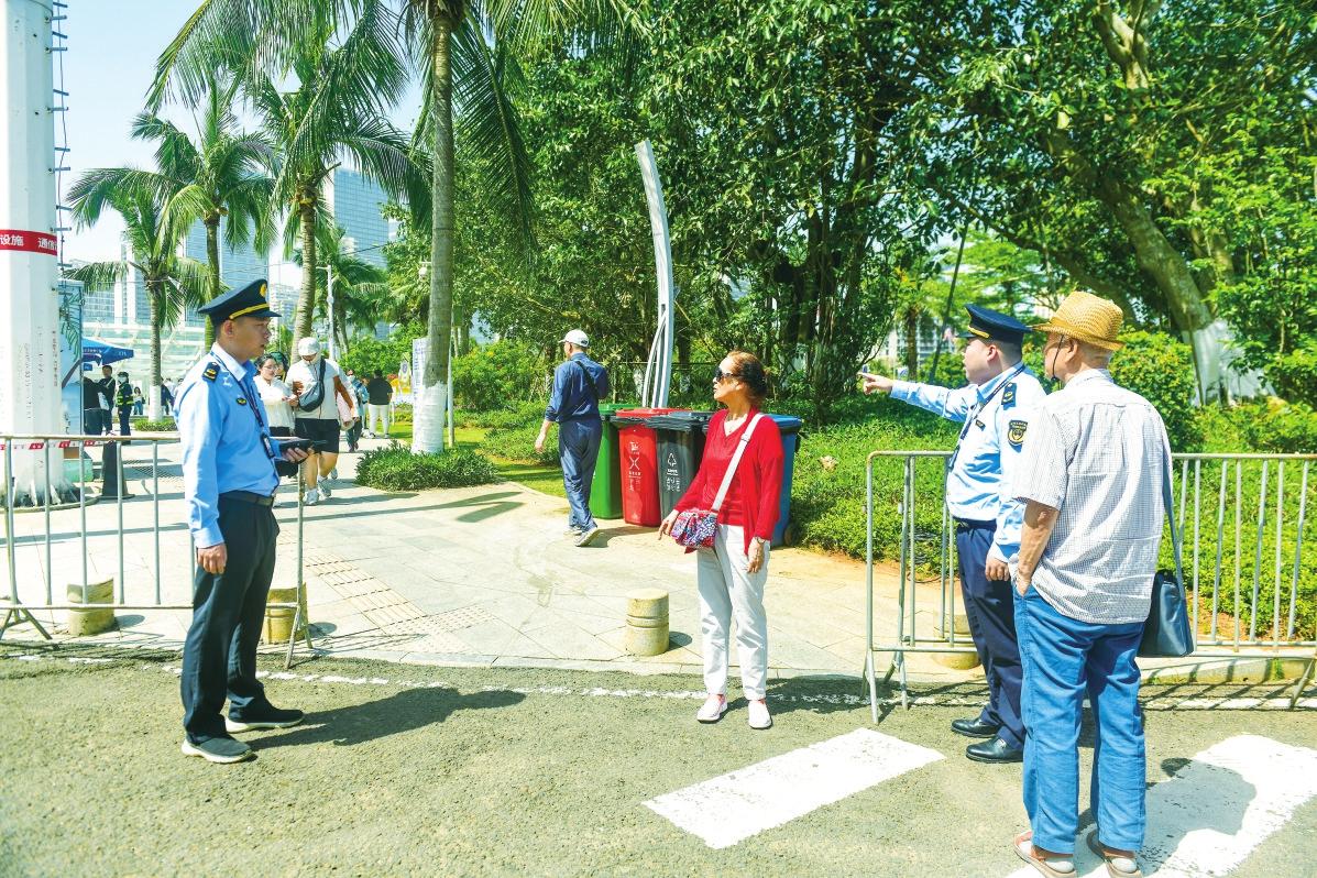 消博會期間,???/span>市綜合行政執(zhí)法局秀英分局執(zhí)法人員為市民指引道路。