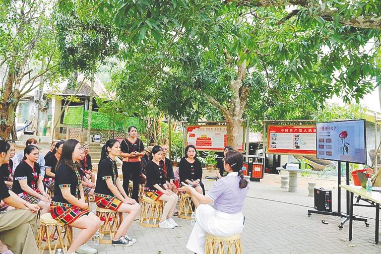 “黎花知音”課堂走進(jìn)昌江王下鄉(xiāng),學(xué)員在大樹下聽講。受訪者供圖