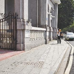 改造后的第一次全國(guó)勞動(dòng)大會(huì)舊址門前人行道得以完整貫通,顯著提升通行連續(xù)性與安全性。記者 駱昌威 攝