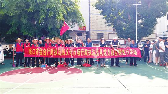 7月27日,海口市綜合行政執(zhí)法局文化市場(chǎng)行政執(zhí)法支隊(duì)(下稱文化支隊(duì))全體黨員干部前往結(jié)對(duì)社區(qū)——美蘭區(qū)海甸街道福安社區(qū),開(kāi)展愛(ài)國(guó)衛(wèi)生運(yùn)動(dòng),以實(shí)際行動(dòng)助力城市環(huán)境提升和防蚊滅蚊工作。