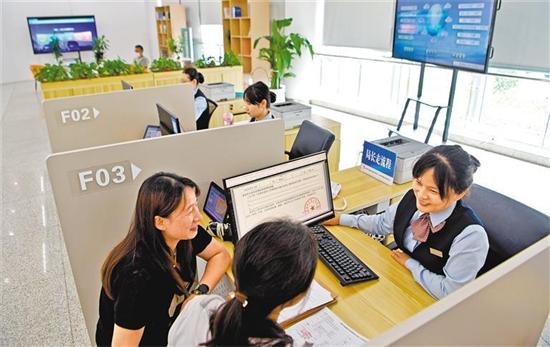 6月24日,安徽省淮南市政務(wù)服務(wù)大廳,企業(yè)代表在與工作人員交流。近年來,該市持續(xù)打造集約高效的政務(wù)服務(wù)體系,推進跨層級、跨區(qū)域的信息共享和業(yè)務(wù)協(xié)同,讓群眾實現(xiàn)“高效辦成一件事”。陳彬 攝(中經(jīng)視覺)