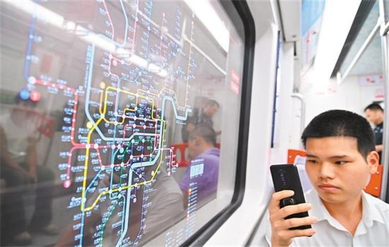 5月7日,重慶軌道交通1號線列車智慧車窗,乘客在透明OLED顯示屏上查看線路、前方到站、3D站臺、周邊景點等信息。重慶市已打造多個智慧車站,采用智慧安防、智能開關(guān)站、客流智能分析預(yù)測等技術(shù),為乘客帶來全新的出行體驗。孫凱芳 攝(中經(jīng)視覺)
