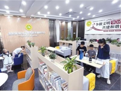 孩子們?cè)谟H民化改造后的美好新城社區(qū)黨員群眾服務(wù)中心內(nèi)看書、自習(xí)。長(zhǎng)江日?qǐng)?bào)記者楊榮峰攝