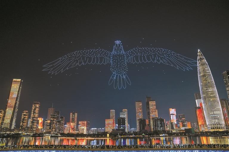 深圳人才公園,無人機(jī)組成大鵬展翅。