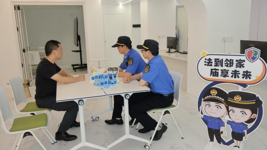 在鐘公廟街道,綜合執(zhí)法隊(duì)為商戶打造“10分鐘服務(wù)圈”。3家“法到鄰家”基層執(zhí)法工作室在繁鬧的萬達(dá)商圈、恬靜的咖啡館等街頭巷尾處,將服務(wù)觸角延伸至“抬腳一步路”。商戶可以通過“益企服”平臺(tái)預(yù)約執(zhí)法人員上門排查隱患,商戶的查漏補(bǔ)缺變得“像點(diǎn)外賣一樣快捷”。“法治沙龍”上,商戶可與執(zhí)法人員、駐點(diǎn)律師面對面,對經(jīng)營中遇到的難題暢所欲言,將經(jīng)營中的“煩心事”變成“好方法”。政企之間的交流不再只有冷冰冰的執(zhí)法條款,更多是街坊鄰里間“抬腳即達(dá)”的便利和溫暖。