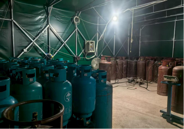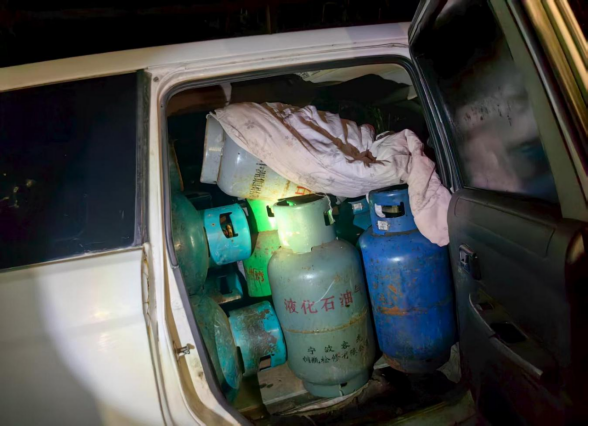 7月中旬,龍山鎮(zhèn)綜合行政執(zhí)法隊接到線索稱,該鎮(zhèn)金岙村附近深夜常有燃?xì)馄窟\輸車往來。通過執(zhí)法隊與公安、基層網(wǎng)格隊伍的聯(lián)動排查,最終在邱王村與金岙村交界的隱蔽處發(fā)現(xiàn)一個氣瓶倒灌窩點。現(xiàn)場堆放著275只大小規(guī)格不一的氣瓶,4套灌裝工具正灌裝著液化氣。