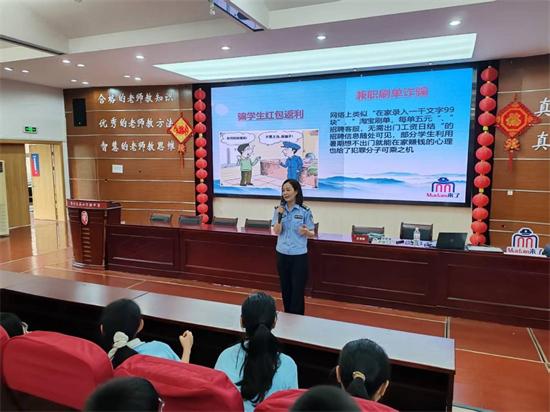 9月23日下午,“Madam來了”志愿團(tuán)團(tuán)長董黎娜走進(jìn)姜山鎮(zhèn)中學(xué),為160名師生帶來新學(xué)期“平安第一課”。課程聚焦校園欺凌、防溺水、電信網(wǎng)絡(luò)詐騙三大主題,通過真實(shí)案例剖析、互動(dòng)問答等形式,增強(qiáng)學(xué)生自我保護(hù)意識(shí)和法律意識(shí)。通過講師深入淺出地講解,同學(xué)們都積極參與安全知識(shí)問答,生動(dòng)有趣的互動(dòng)贏得師生廣泛好評。