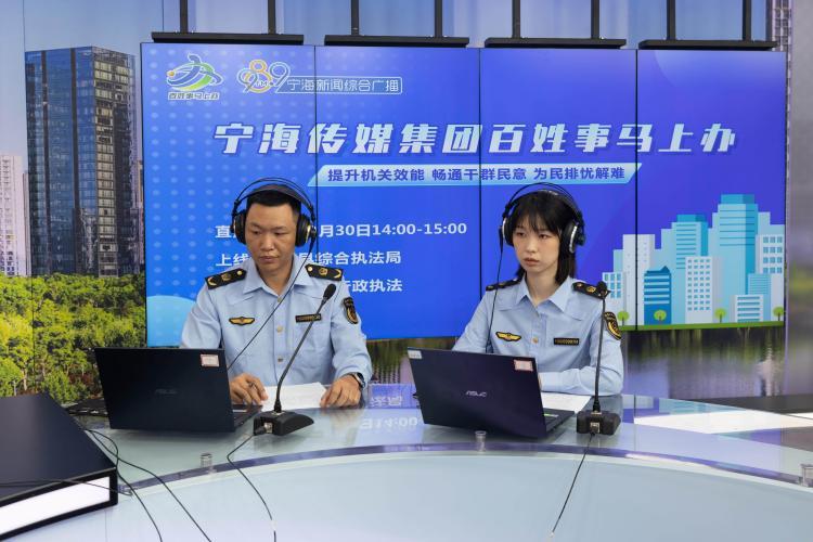 10月30日,浙江省寧海傳媒集團(tuán)“百姓事馬上辦”民生熱線邀請寧??h綜合行政執(zhí)法局相關(guān)科室負(fù)責(zé)人走進(jìn)廣播直播間,圍繞“放心早餐”申請、違停處理、文明養(yǎng)犬等群眾高頻關(guān)注話題,通過廣播FM98.9、“看寧?!笨蛻舳?、“直播寧海”抖音號等五大平臺,與聽眾、網(wǎng)友實(shí)時(shí)互動交流。