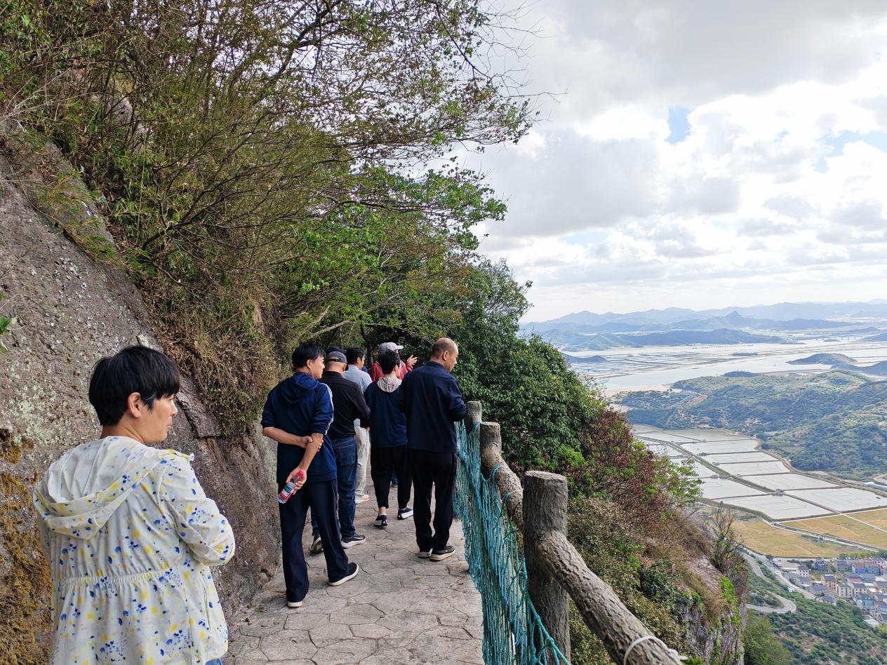 活動首站設(shè)在泗洲頭鎮(zhèn)靈巖山。老同志們精神抖擻,沿著步道緩步而上。大家邊走邊聊,暢談象山縣生態(tài)文明建設(shè)帶來的城鄉(xiāng)新變化。登頂遠(yuǎn)眺,蟹鉗港的山海全景盡收眼底——碧海、灘涂、田園與村落交相輝映,構(gòu)成一幅動人的生態(tài)畫卷。老同志們紛紛拍照留念,感嘆家鄉(xiāng)綠色發(fā)展成果。退休干部老周激動地說:“這些年,縣里的生態(tài)建設(shè)成效顯著,讓我們倍感自豪?!?/p>
