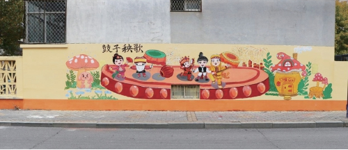 為讓墻繪作品既貼合城市文明建設(shè)要求,又貼近民生、便于傳播,雙方多次深度對(duì)接:一方面將垃圾分類、街巷環(huán)境提升等城管重點(diǎn)工作轉(zhuǎn)化為生動(dòng)畫面,讓市民在觀賞中直觀了解城管工作;另一方面融入濟(jì)陽(yáng)地標(biāo)、特色農(nóng)副產(chǎn)品、鼓子秧歌等本土元素,將抽象文明理念與地域文化轉(zhuǎn)化為場(chǎng)景化視覺內(nèi)容,增強(qiáng)群眾認(rèn)同感。